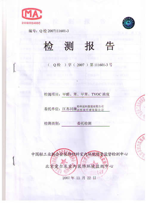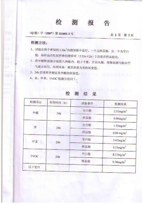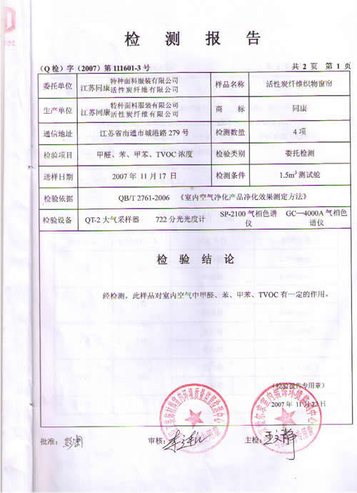 活性炭纖維織物窗簾檢測(cè)報(bào)告