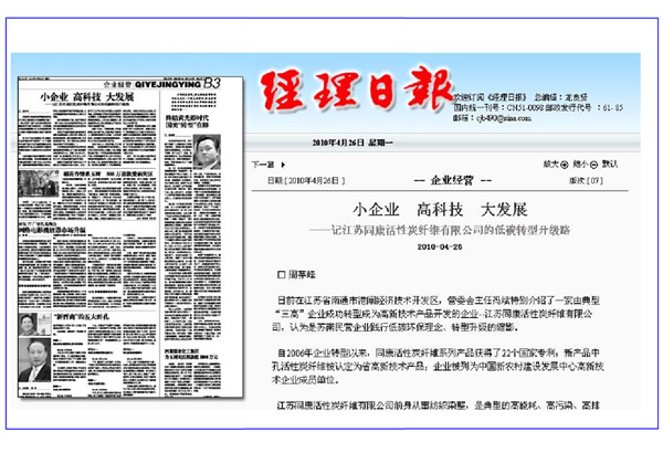 經理日報——小企業(yè)、高科技、大發(fā)展“記江蘇同康活性碳纖維有限公司的低碳轉型升級路”
