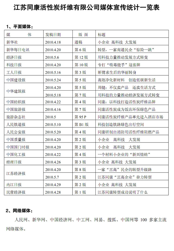赴同康公司采訪媒體統(tǒng)計(jì)一覽表